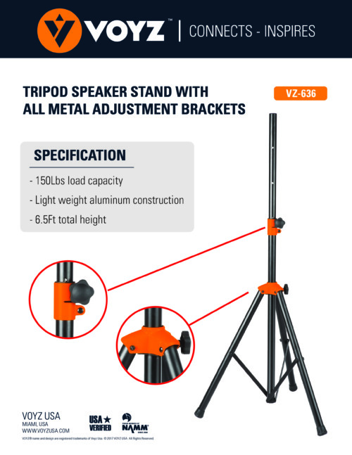 TRIPOD SPEAKER STAND WITH ALL METAL ADJUSTMENT BRACKETS