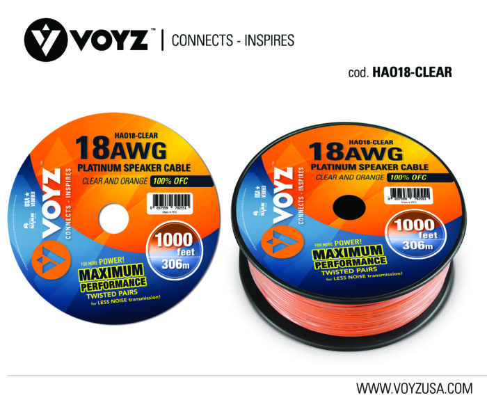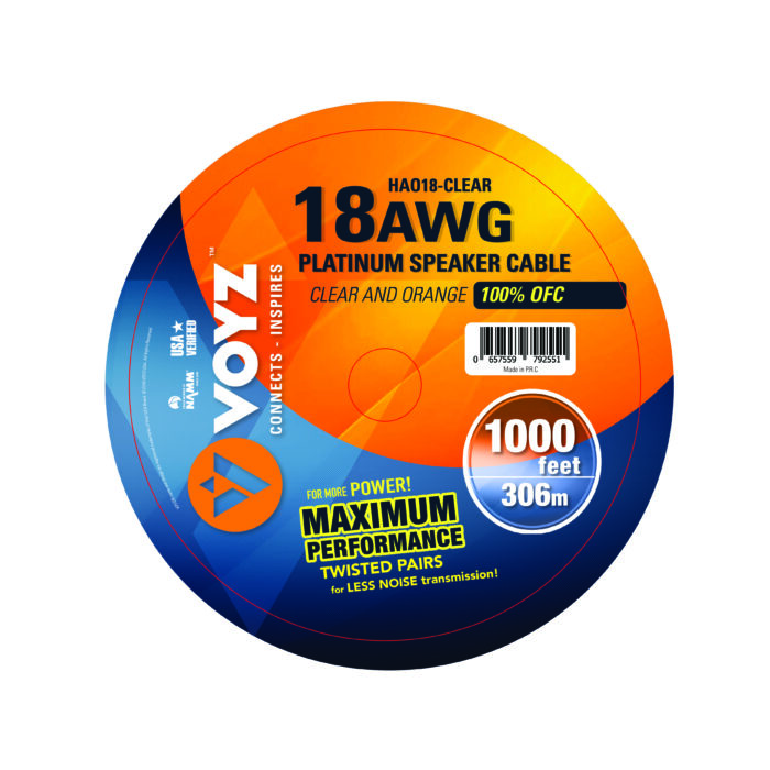18 AWG CLEAR SPEAKER CABLE 1000FT HAO18-CLEAR