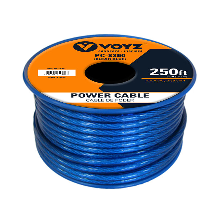 Upgrade your car audio system with our high-performance 8AWG Power Cable. With a substantial length of 250FT, this cable provides the flexibility and reach needed to connect car audio equipment to a power source effectively. Its clear blue design not only looks great but also complements your vehicle's aesthetics. Crafted from durable and oxygen-free PVC, this cable ensures reliable power transmission, allowing you to enjoy uninterrupted music on the road.