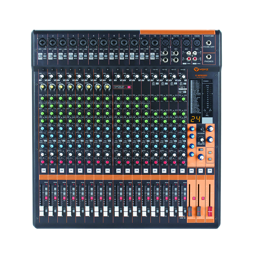 SPX algorithm: 24 programs, PARAMETER control:1, FOOT SW:1 (FX RTN CH on/off). 20-channel mixing console